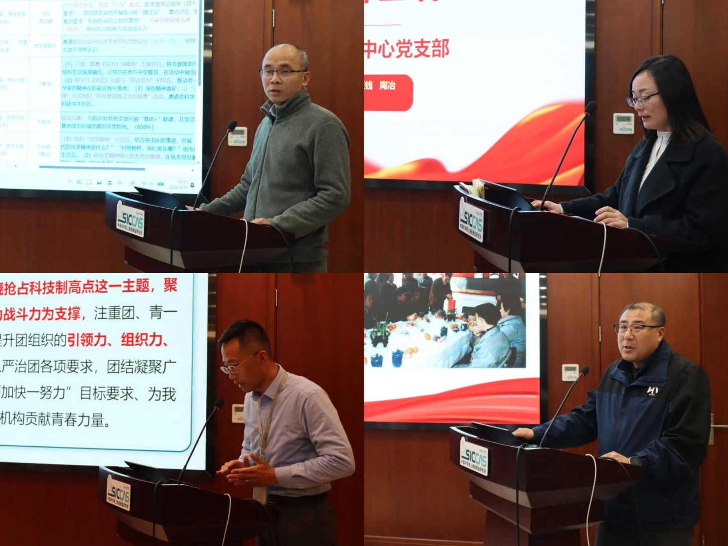 在交流研讨环节,结构陶瓷与复合材料工程研究中心党支部副书记何平、无机材料分析测试中心党支部书记钱荣、团委书记仲鹤、民盟支部主委刘岩围绕所党委年度重点工作,聚焦服务研究所科技创新,汇报了年度工作思路和重点任务。与会人员积极交流、踊跃发言、群策群力,分享了进一步做好党建工作的创新思路与务实建议,交流了在实际工作中面临的困惑和问题。