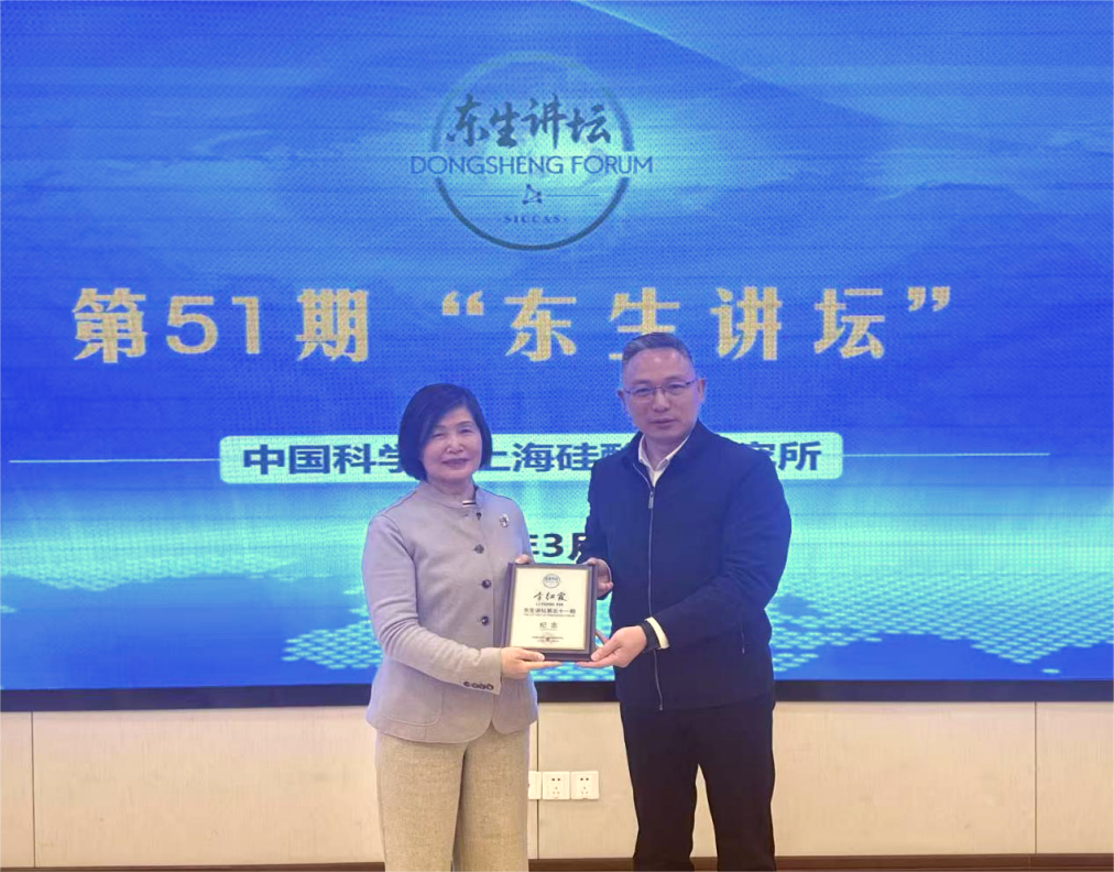 报告结束后,苏良碧所长代表上海硅酸盐所向李红霞院士赠送纪念证书,李红霞院士为第五十一期“东生讲坛”讲座签名留念。