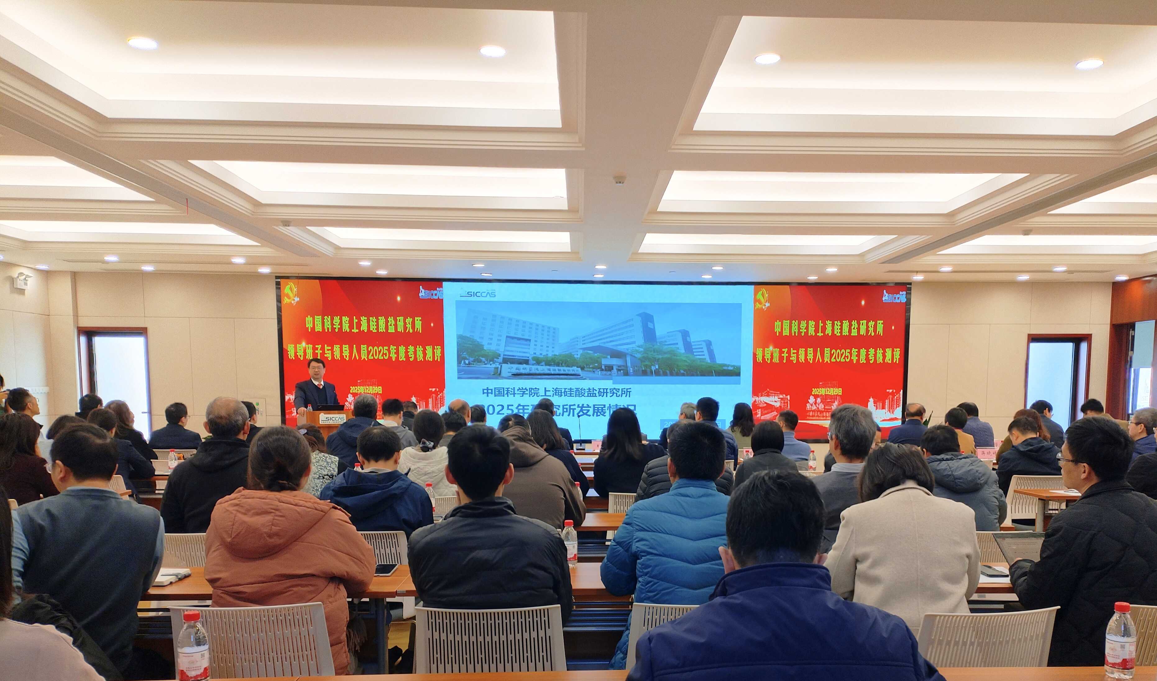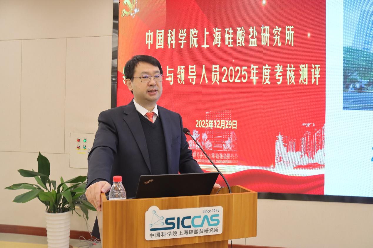 12月29日上午,中国科学院上海硅酸盐研究所召开领导班子与领导人员2025年度考核测评大会。领导班子成员、党委委员、所务委员、纪委委员、学术委员会委员、中心正副主任、中层领导人员、党支部书记、职代会常设主席团成员、工青妇组织负责人等参会。中国科学院上海分院人事人才处王洋同志参会。上海硅酸盐所所长苏良碧主持会议并讲话。