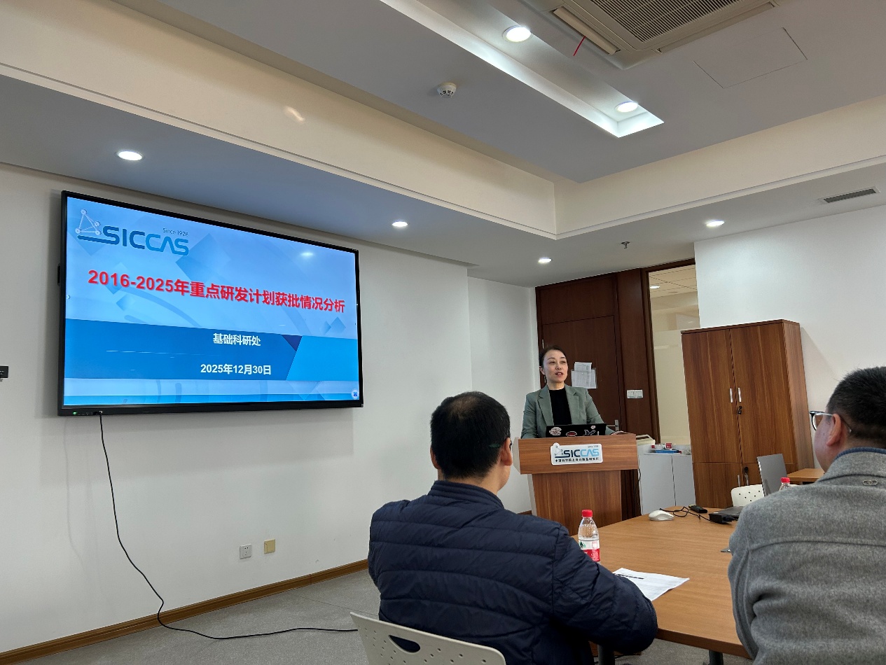 12月30日,中国科学院上海硅酸盐研究所无机材料分析测试中心召开了2025年测试中心青年学术交流会。基础科研处副处长沈沪江,测试中心主任曾毅,副主任许钫钫,党支部书记、副主任钱荣,来自中心和所内的40多名青年科研人员和研究生参加了报告会。报告会由许钫钫主持。