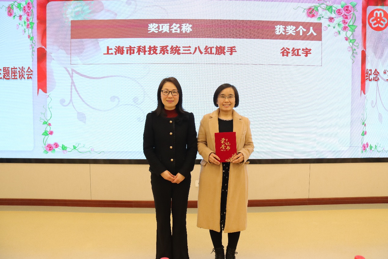 何晌艳为上海市科技系统“三八红旗手”获得者颁奖