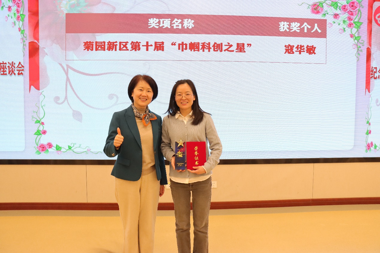 姚芳为菊园新区第十届“巾帼科创之星”获得者颁奖