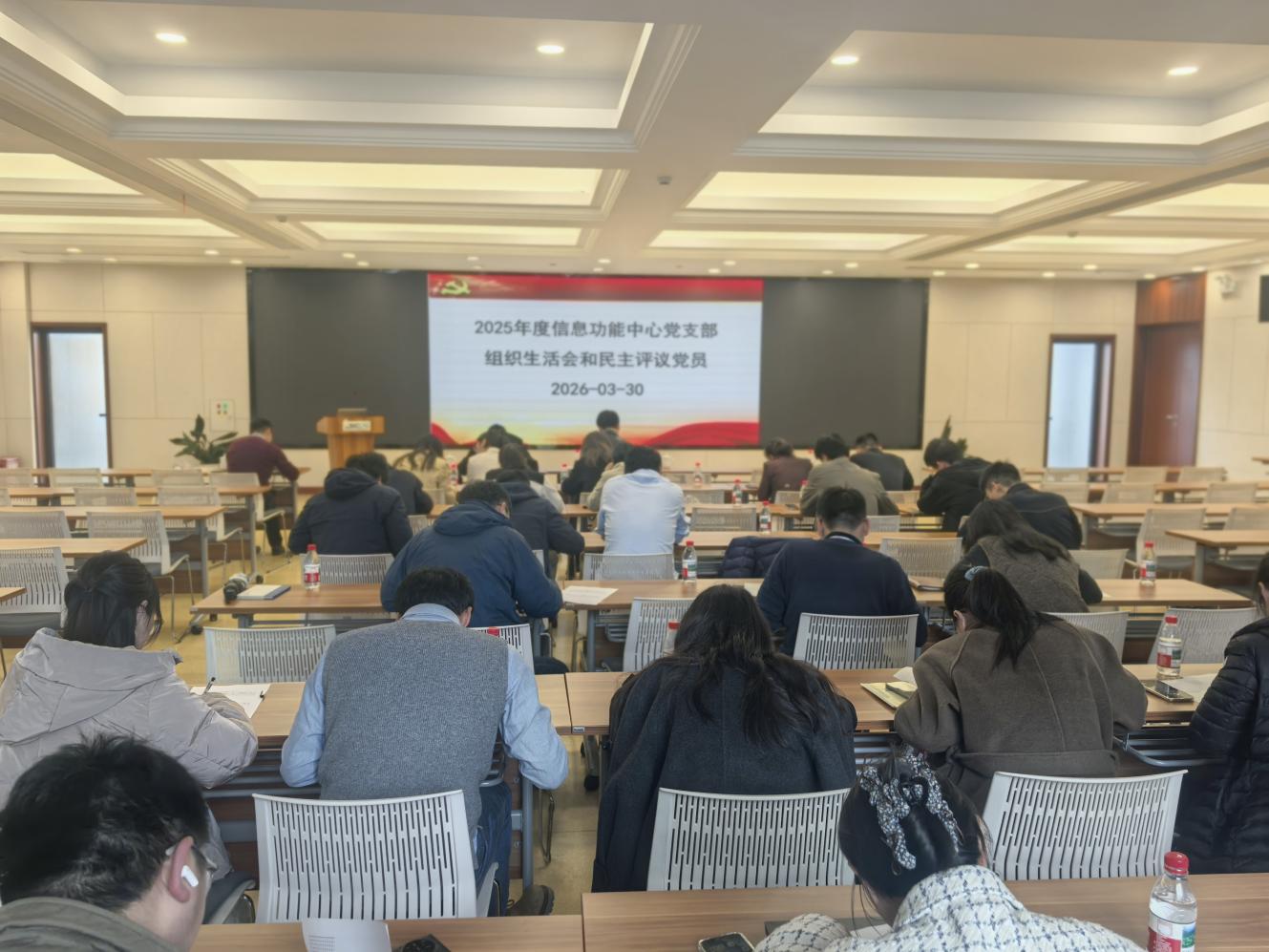 3月30日下午,中国科学院上海硅酸盐研究所信息功能材料与器件研究中心党支部开展“学精神、强党性、重实干、促攻坚”主题党日活动,深入学习贯彻习近平总书记关于树立和践行正确政绩观学习教育的重要讲话和重要指示精神、2026年全国两会精神和全国科技大会精神、中国科学院2026年度工作会议、冬季党组扩大会议精神。上海硅酸盐所党委书记王东,所务委员、科技发展部部长、发展规划处处长刘军,所务委员、信息功能中心副主任马名生,及支部全体党员和科研人员等参加活动。会议由中心党支部书记、副主任曾华荣主持。