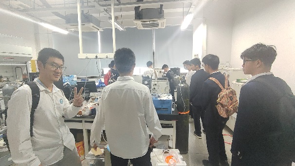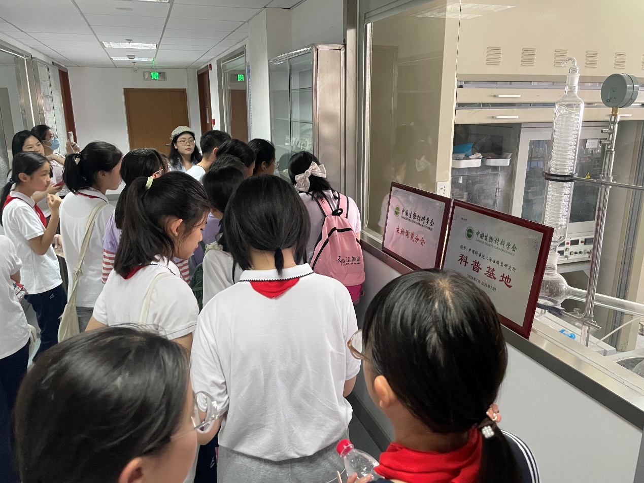 在志愿者带领下,同学们参观了中国生物材料学会科普基地、生物材料表面与界面课题组、先进材料与新能源应用课题组、生物纳米技术课题组、介孔与低维纳米材料课题组相关实验室,参观了“科技报国·材料筑梦”党员主题教育基地,学习缅怀无机材料大师严东生院士事迹。