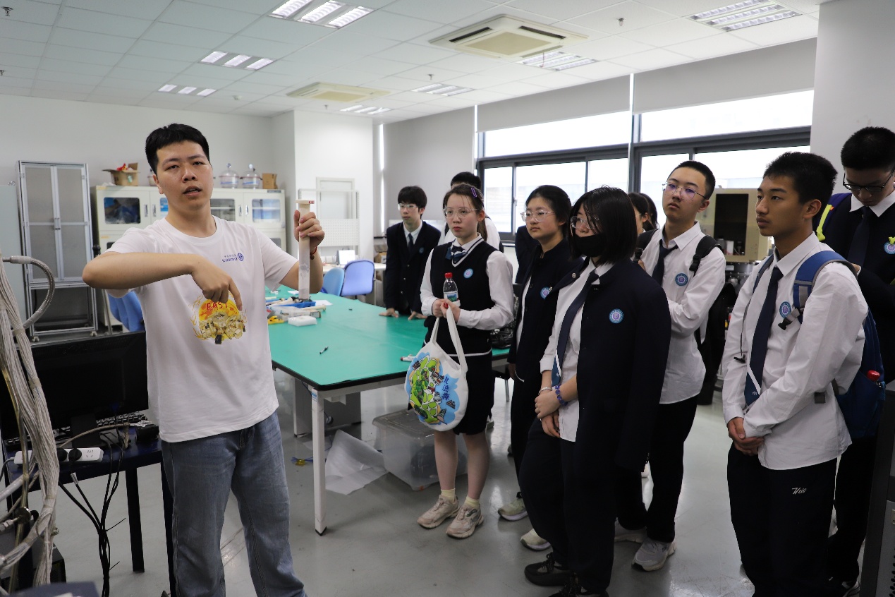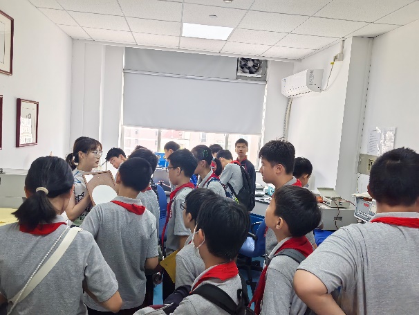 中小学生们在志愿者带领下参观了嘉定园区的空间材料与应用技术课题组、纳米功能材料与光电应用课题组、氢能材料及器件课题组、轻金属基电池体系和材料课题组、热电转换材料与器件课题组实验室,参观了研究所成果展室、古陶瓷展览馆、“材料强国”全国弘扬科学家精神教育基地。