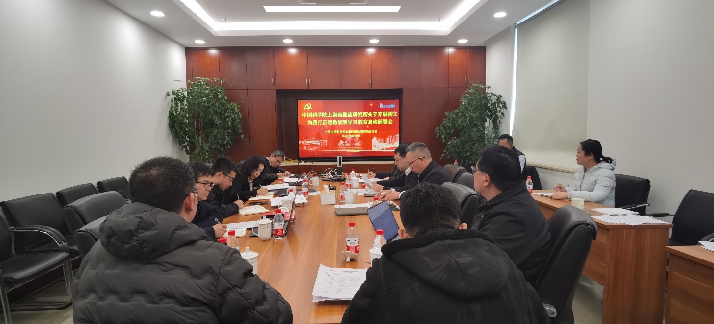 会议专题学习贯彻习近平总书记关于树立和践行正确政绩观学习教育的重要讲话和重要指示精神,传达学习贯彻落实《中共中央办公厅关于在全党开展树立和践行正确政绩观学习教育的通知》,贯彻落实院党组实施方案,研究部署开展树立和践行正确政绩观学习教育工作,审议通过《中国科学院上海硅酸盐研究所关于开展树立和践行正确政绩观学习教育工作举措台账》。
