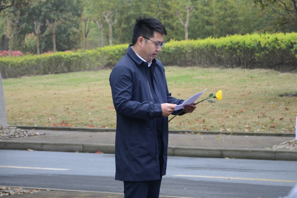 在“之文楼”一侧的殷之文先生雕像前,人工晶体研究中心副主任吴云涛研究员在发言中回顾了殷之文先生在闪烁晶体等领域的科研历程,表示作为青年科技工作者要传承老一辈科学家专注勇敢、执着无畏的品格和精神,坚守科技报国初心,为国家科技事业发展贡献青春和才智。青年科研人员代表、电力储能技术与应用课题组博士后杨程,青年学生代表、2016级硕博连读生孙策发言,表示要努力弘扬殷先生宝贵的家国情怀、担当精神和创新精神,肩负起时代赋予的责任,把论文写在祖国大地上。