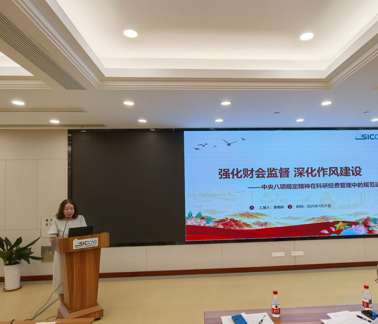 蒋晓婷作题为《强化财会监督 深化作风建设—中央八项规定精神在科研经费管理中的规范运行》主题报告,解读了院党员干部违反中央八项规定精神典型案例,结合近期项目实时监管案例,表示将作风建设与科研管理深度融合,要严格经费管理、强化财务监督、筑牢合规防线。