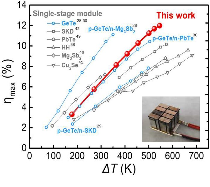 提出了基于准同型相界协同调控Ag2(Se,S)固溶体热-电-力性能的新方法,研制出具有室温最高性能的塑性热电材料;发展了基于第一性原理计算相图设计界面扩散阻挡层的策略,开发出能量转换效率高达12%的GeTe基单级器件,有望应用于深空/深海特种电源。