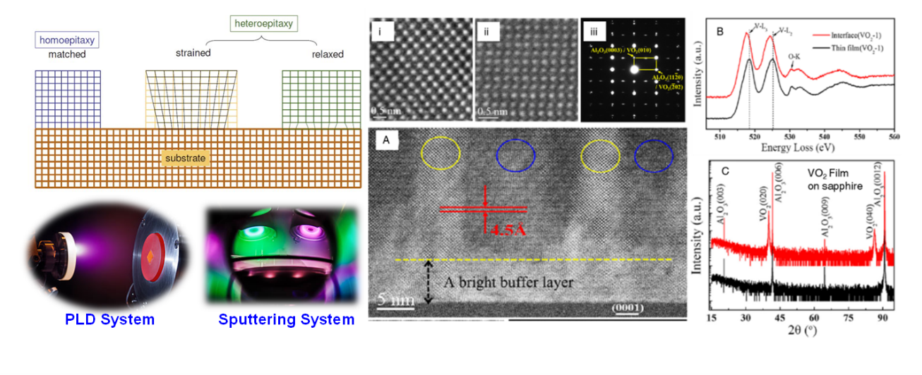 通过物理气相沉积系统(如脉冲激光沉积系统、磁控溅射系统等),制备各类功能薄膜。通过生长高质量薄膜,可调控材料的光学与电学特性;同时专注于高质量外延异质结构的生长及薄膜表征技术,以制备高性能器件。