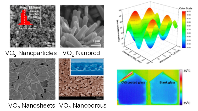 随着全球经济的发展和气候变化的加剧,节能项目日益重要。通过制造不同的纳米结构和器件,材料能够调节和改变光(可见光/红外光)与热能,从而在人类生活中实现节能效果。我们的研究方向涵盖功能氧化物薄膜、变色材料及先进纳米材料的加工与表征,这些材料广泛应用于能源与电子领域。我们同时致力于开发低成本纳米材料,并推动实际应用中的关键技术突破。
