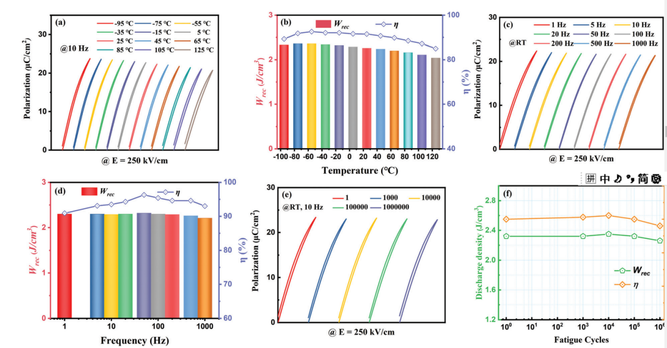 钛酸钡基铁电陶瓷具有高功率密度、高耐电强度和充放电速度快等优点,在电力电子和脉冲功率系统中具有重要应用。介质陶瓷的有效介电常数(ΔP/ΔE)和耐电强度(BDS)本征上相互制约,当前研究主要是通过降低有效介电常数,提高耐电强度或提升有效介电常数来补救储能密度的降低,制约了高功率脉冲储能器件向轻量化、小型化的发展。如何获得宽温范围内高而稳定的储能密度是高功率储能器件应用必须解决的问题。