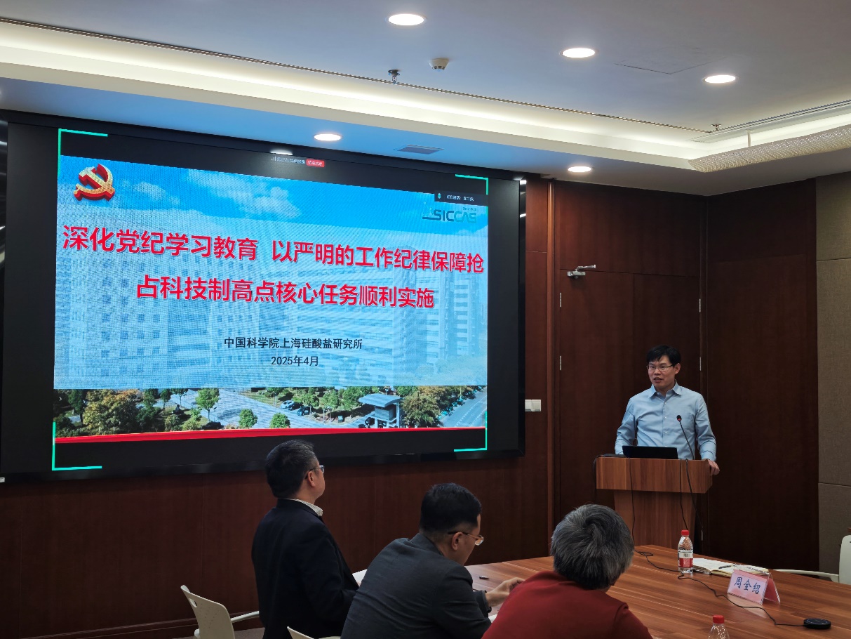 为深入贯彻中央八项规定精神学习教育要求,4月25日,中国科学院上海硅酸盐研究所新材料中试研发中心党支部、人工晶体研究中心党支部联合开展“严明纪律担使命,强化作风促攻坚”主题党日活动。活动邀请嘉定区百姓宣讲团团长、区委党校原副教授周全绍,所党委委员、晶体中心主任刘学超,纪委副书记、人力资源处处长贺天厚,科技发展部部长、发展规划处处长刘军,中试研发中心党支部书记袁兰英,党支部副书记、副主任朱勇,副主任贾颖楠,晶体中心党支部书记、副主任孔海宽,副主任吴云涛及两个支部40余名党员参加活动,活动由袁兰英主持。