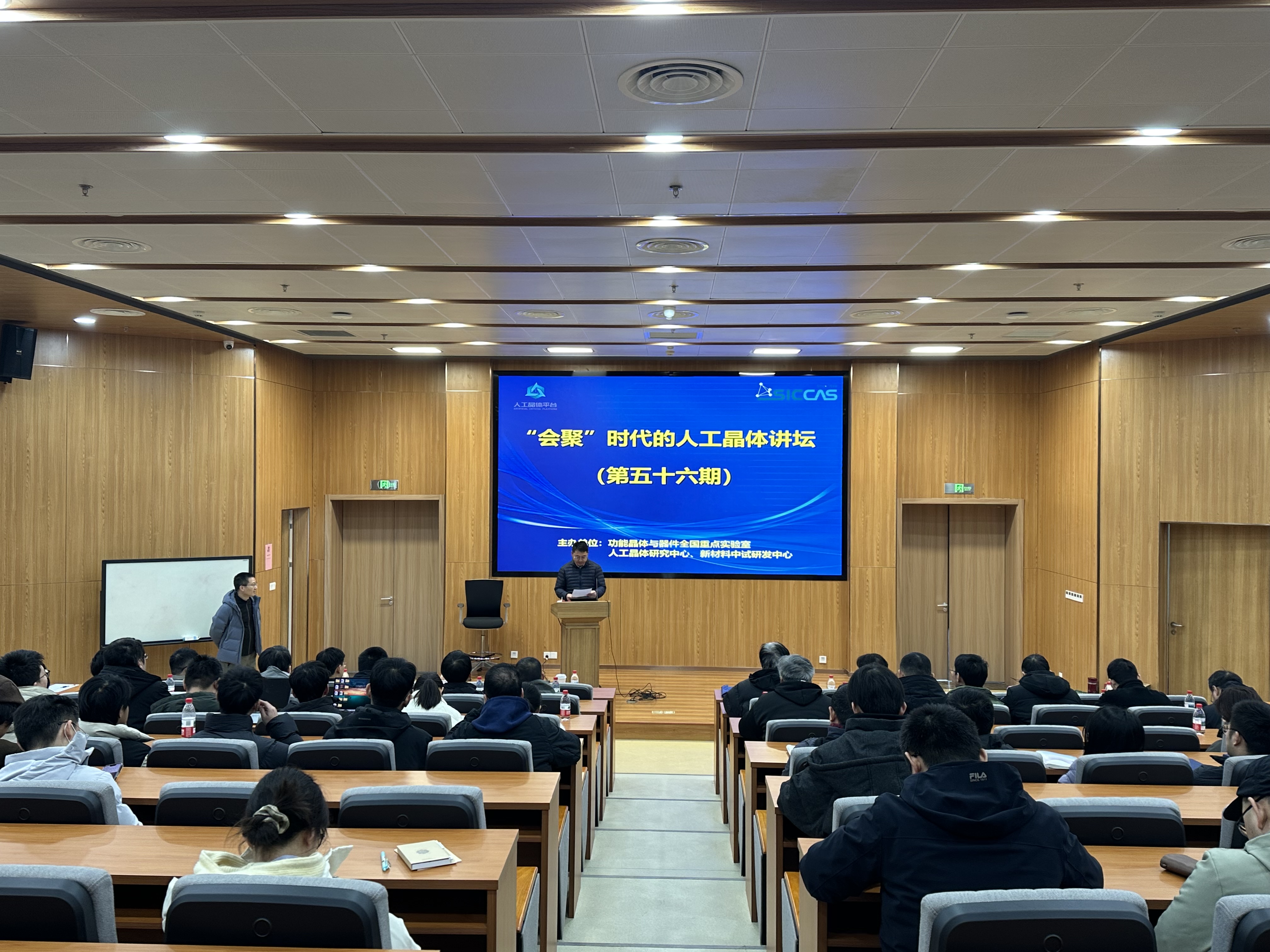 1月20日下午,功能晶体与器件全国重点实验室、中国科学院上海硅酸盐研究所人工晶体研究中心和新材料中试研发中心联合举办第五十六期“会聚”时代的人工晶体讲坛。北京大学博雅特聘教授、凝聚态物理与材料物理研究所所长刘开辉应邀作学术报告。上海硅酸盐所所长、功能晶体与器件全国重点实验室主任苏良碧研究员,所务委员、功能晶体与器件全国重点实验室副主任吴云涛研究员,党委委员、人工晶体研究中心主任刘学超研究员,新材料中试研发中心副主任朱勇研究员,以及相关领域的科研人员与研究生参加讲坛。讲坛由吴云涛主持。