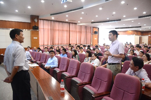 6月8日下午,中国科学院上海硅酸盐研究所在长宁园区举办第二期“东生讲坛”,邀请中国科学院院士,发展中国家科学院院士,湖南大学副校长谭蔚泓教授作为主讲嘉宾,为上海硅酸盐所120余名科研人员与研究生带来题为“DNA based molecular circuits and biomaterials”的学术报告。上海硅酸盐所党委书记李正华,副所长杨建华、董显林,上海硅酸盐所学位委员会主任、高性能陶瓷和超微结构国家重点实验室学术委员会副主任施剑林研究员等出席讲坛,讲坛由杨建华主持。杨建华代表上海硅酸盐所向谭蔚泓院士作客第二期“东生讲坛”表示热烈欢迎和诚挚感谢,并介绍了讲坛设立背景。