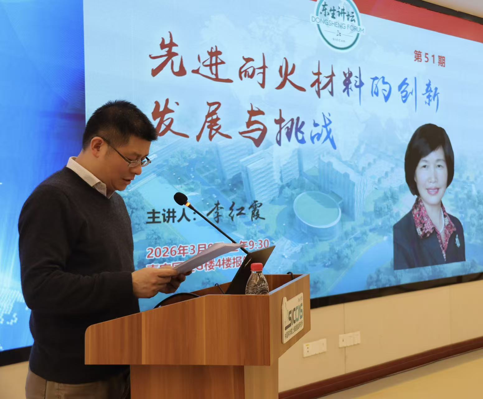 史迅代表上海硅酸盐所向李红霞院士表示热烈欢迎和诚挚感谢,并简要介绍了讲坛设立的相关背景和李红霞院士的科研领域。