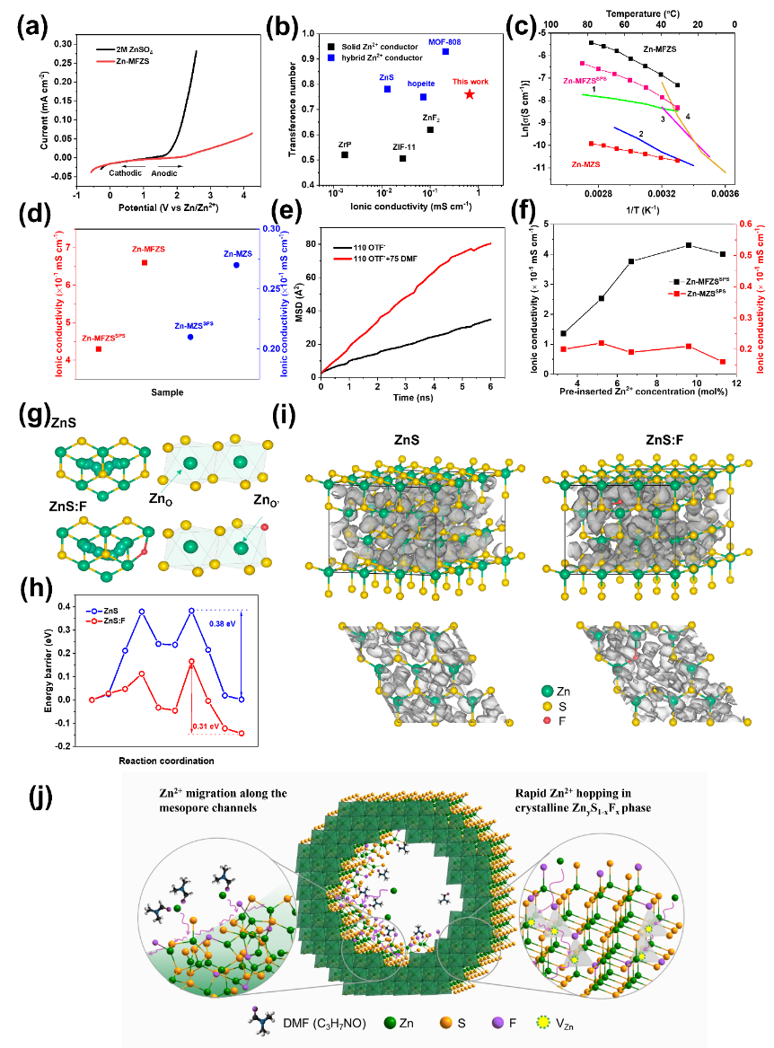 锌离子在介孔硫化锌快离子导体ZnyS1-xFx (Zn-MFZS)中的传输规律以及理论计算表征