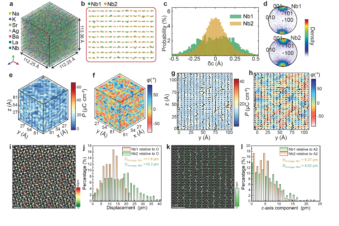 3. (a-h)基于RMC-PDFTTB高熵陶瓷局域极化结构,(i-l) 基于iDPC-STEMHAADF-STEMTTB高熵陶瓷局域极化分布