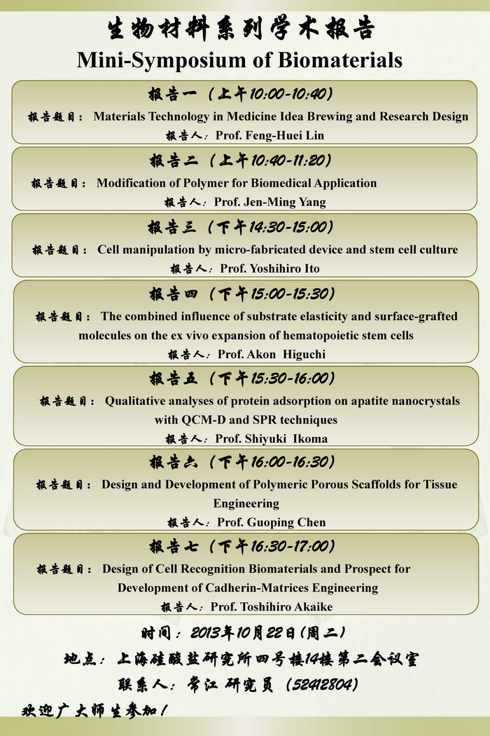 生物材料系列学术报告(Mini-Symposium of Biomaterials)