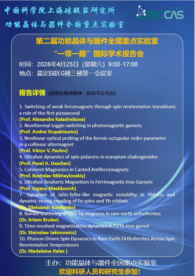 第二届功能晶体与器件全国重点实验室“一带一路”国际学术报告会