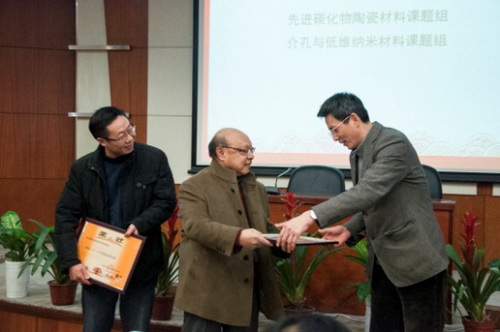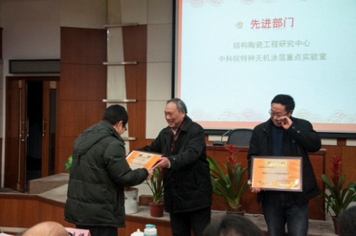 江东亮院士为先进部门获得者结构陶瓷工程研究中心、中科院特种无机涂层重点实验室代表颁奖