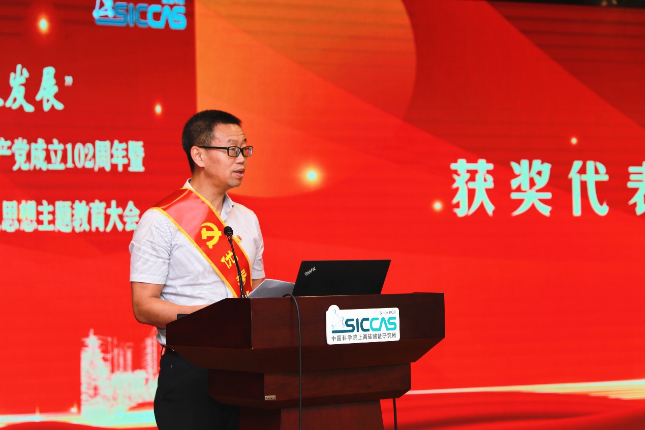 在“先进表彰”环节,党委书记王东宣布2023年中国科学院、上海分院“两优一先”表彰名单、上海分院“四强”星级党支部名单;纪委书记、党委委员杨建华宣读了上海硅酸盐所党委关于“两优一先”的表彰决定。