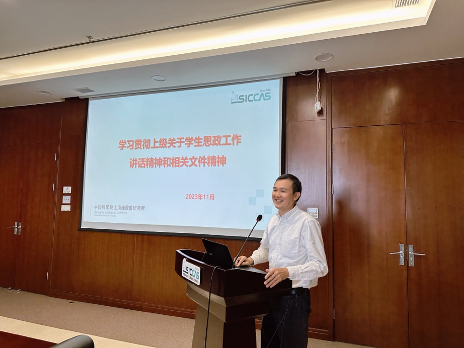 党的二十大报告提出“实施科教兴国战略,强化现代化建设人才支撑”,为深入贯彻党的二十大精神和习近平总书记对研究生教育工作作出的重要指示精神,11月1日,中国科学院上海硅酸盐研究所召开2023年研究生思想政治工作经验交流研讨会,党委书记、副所长(主持工作)王东出席会议,研究生思想政治工作领导小组成员、导师代表、专兼职辅导员、研究生部人员、研究生党支部支委参加会议,会议由副所长史迅主持。