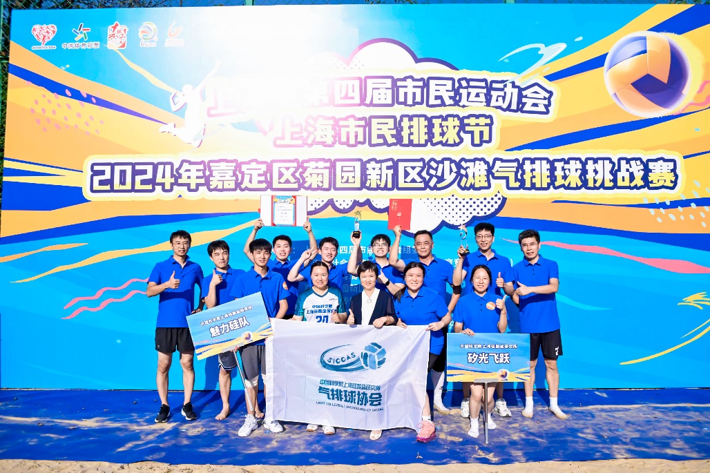 9月27日,上海市第四届市民运动会上海市民排球节——2024年嘉定区菊园新区沙滩气排球挑战赛在嘉定区北水湾体育公园盛大举行。中国科学院上海硅酸盐研究所气排球协会选派人员组成的“魅力硅队” 和“矽光飞跃”两支队伍从来自菊园新区机关事业、科研院所、辖区企业的12支球队中脱颖而出,勇夺冠军和季军。