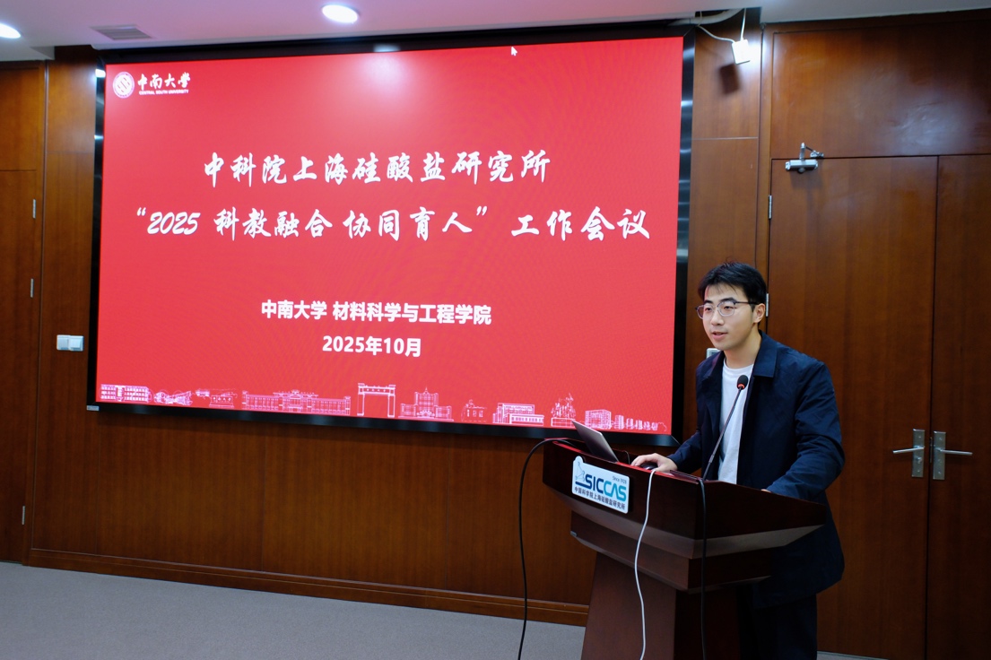 10月24日,中国科学院上海硅酸盐研究所举办2025年“科教融合,协同育人”工作会议。来自上海交通大学、同济大学、中南大学、湖南大学、厦门大学、武汉理工大学、上海大学的教育工作者应邀参会。上海硅酸盐所副所长史迅参加会议并致辞。会议由上海硅酸盐所研究生部副主任陆彩飞主持。本次会议旨在通过深入交流与研讨,进一步凝聚共识,形成合力,为推动科研生力军教育事业高质量发展提供新思路,注入新动力。