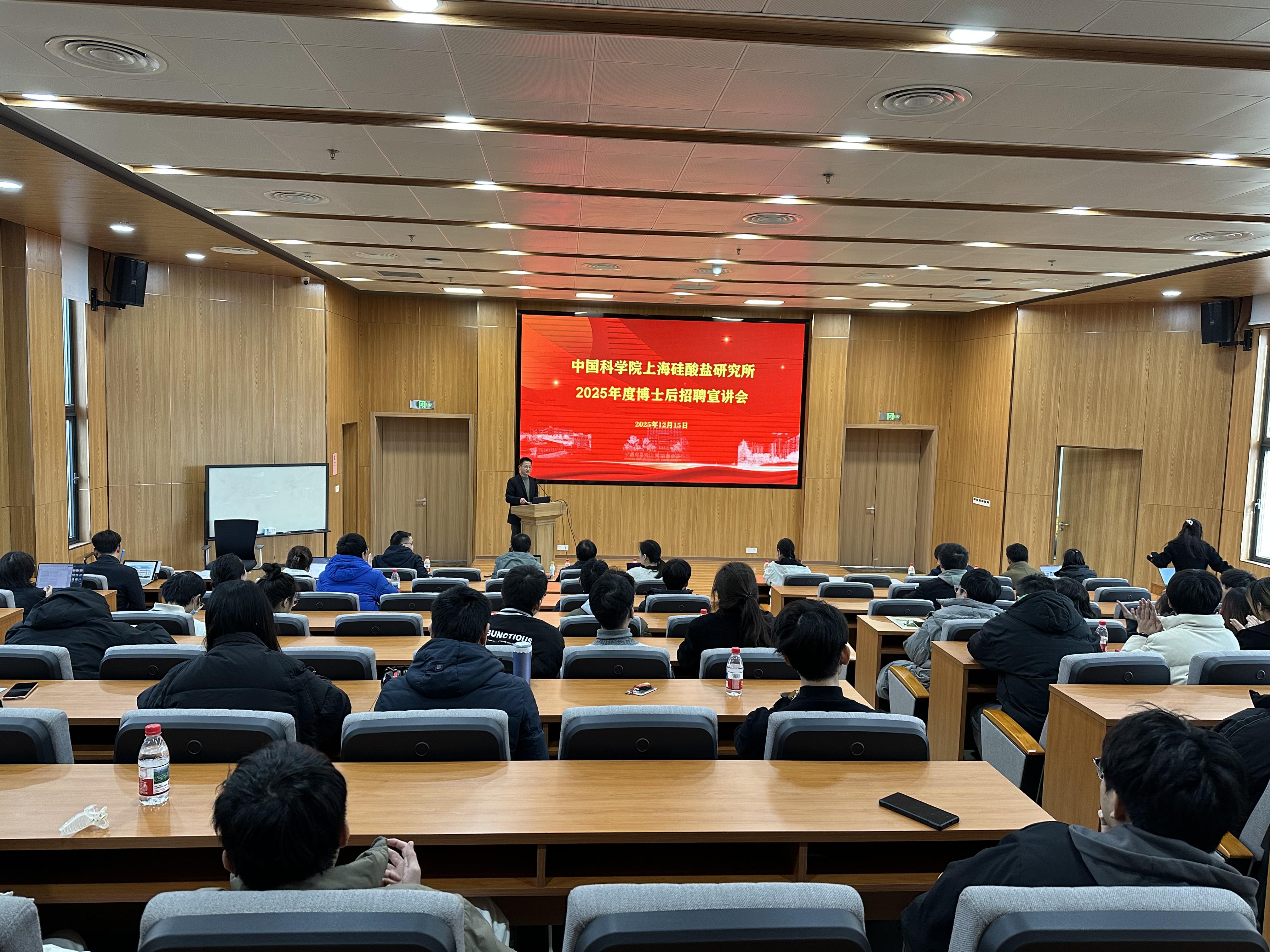 为精准对接科研人才及研究所长期发展需求,扎实推进2025年度青年储备人才队伍建设,12月15日,中国科学院上海硅酸盐研究所举办2025年度博士后招聘宣讲会。此次宣讲会由人力资源处和研究生部共同组织,经过前期宣传,2026届博士毕业生、拟招聘博士后的课题组组长等共100余人参会。