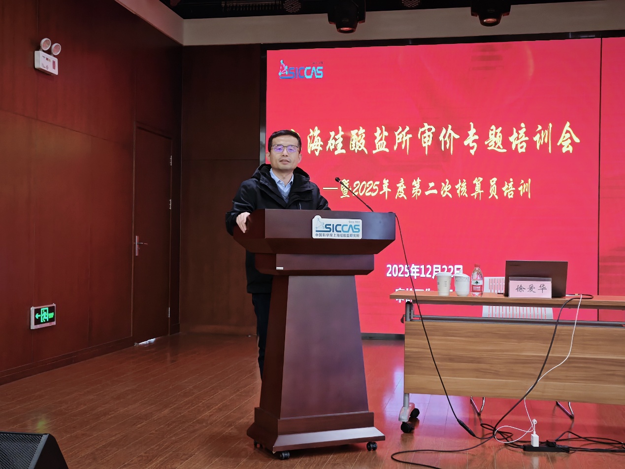 12月22日,中国科学院上海硅酸盐研究所举办审价培训暨2025年度第二次核算员培训会。上海硅酸盐所副所长杨金山出席培训会。上海硅酸盐所相关科研与管理骨干、以及多家兄弟单位90余人参加此次培训。培训会由研究所财务处主办,审价小组协办,财务处副处长曹兆銮主持。