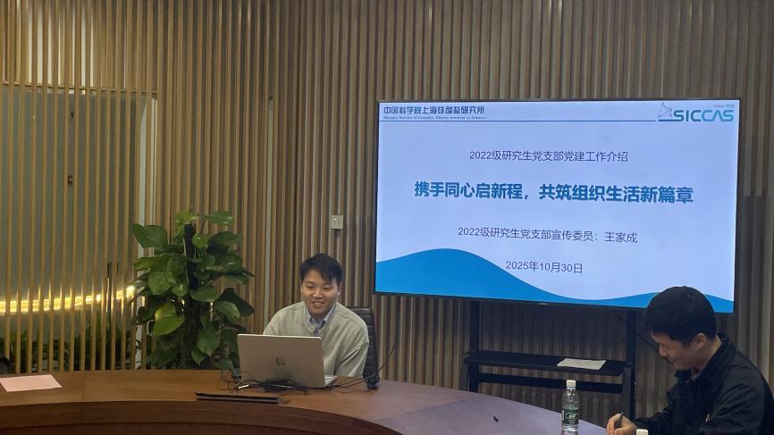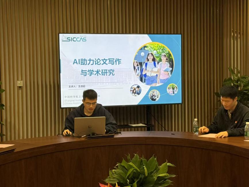 随后,南京大学博士生第六党支部书记缪佳明以《科学家精神在南京大学》为题讲授微党课,通过程开甲院士、闵乃本院士的事迹,追溯并传承南大科学家精神,激励党员弘扬模范精神,勇担时代责任。上海硅酸盐所2022级党支部青年委员王逸超作《AI助力论文写作与学术研究》分享,结合实例介绍了人工智能在文献检索与数据分析中的应用,探讨人机协作的高效科研路径。