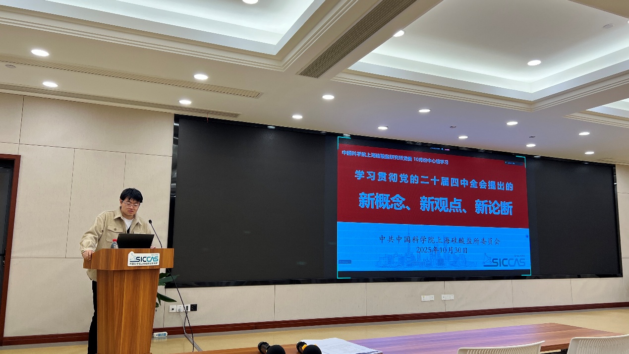11月18日,中国科学院上海硅酸盐研究所2021级研究生党支部召开“学习贯彻科技创新重要论述,凝心聚力抢占科技制高点”主题党日活动。本次活动集理论学习、专题教育与组织发展于一体,全体党员参加活动。支部书记周亮主持活动。