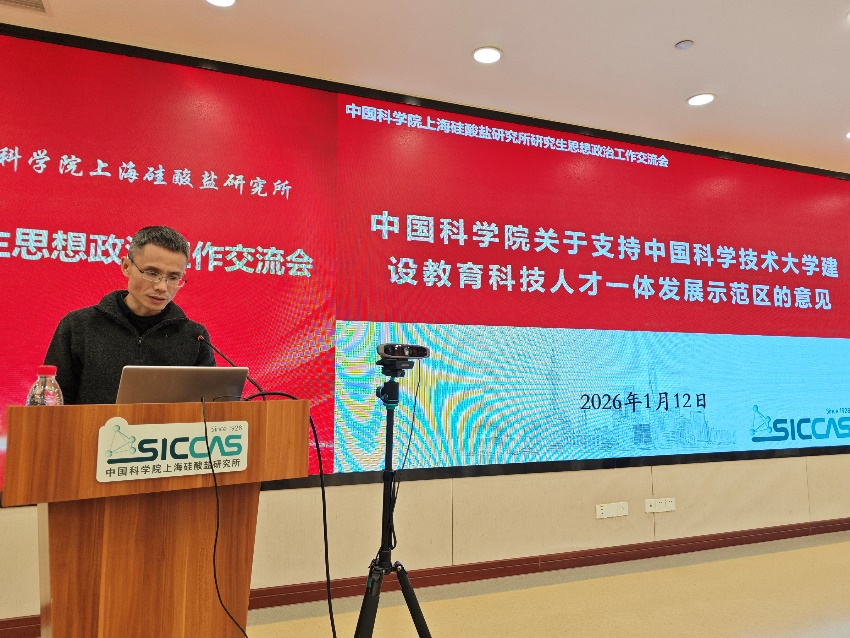 为深入学习贯彻习近平总书记关于加强和改进思想政治工作的重要论述精神,贯彻落实全国教育大会精神和中国科学院科教融合工作会议要求,进一步加强和改进学生在研究所期间的思想政治工作,1月12日,中国科学院上海硅酸盐研究所召开研究生思想政治工作交流会,中国科学院大学党委常委、副校长金德鹏线上参会并作报告,上海硅酸盐所党委书记王东出席并讲话,上海市精神卫生中心李黎出席会议,研究生思想政治工作领导小组成员、导师代表、专兼职辅导员、研究生部工作人员、所团委代表、研究生党支部支委、研究生团支部支委、班级班长、研究生会负责同志、研究生融媒体中心负责同志等50余人参加会议。会议由副所长、党委委员史迅主持。