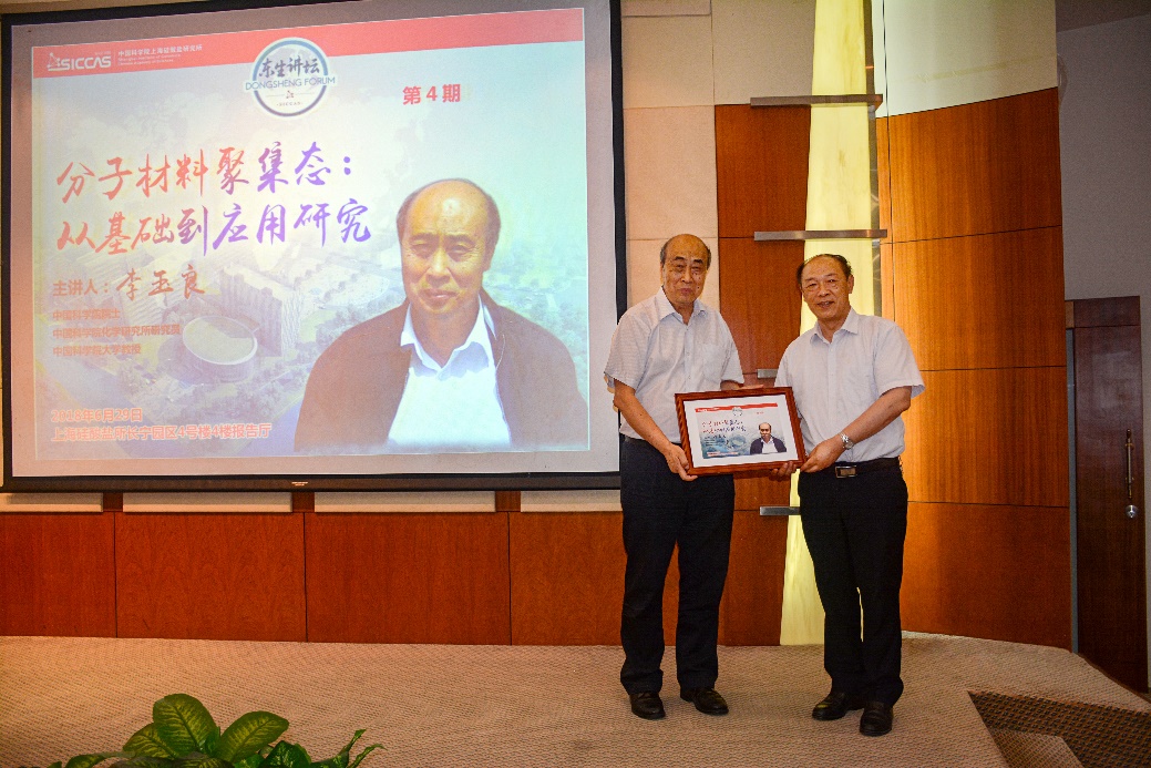 报告会后,宋力昕代表上海硅酸盐所向李玉良院士赠送了纪念证书,李玉良院士为“东生讲坛”第四期讲座签名留念。