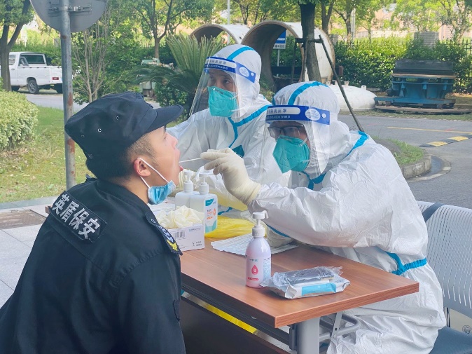 抗疫志愿者在园区进行核酸采样
