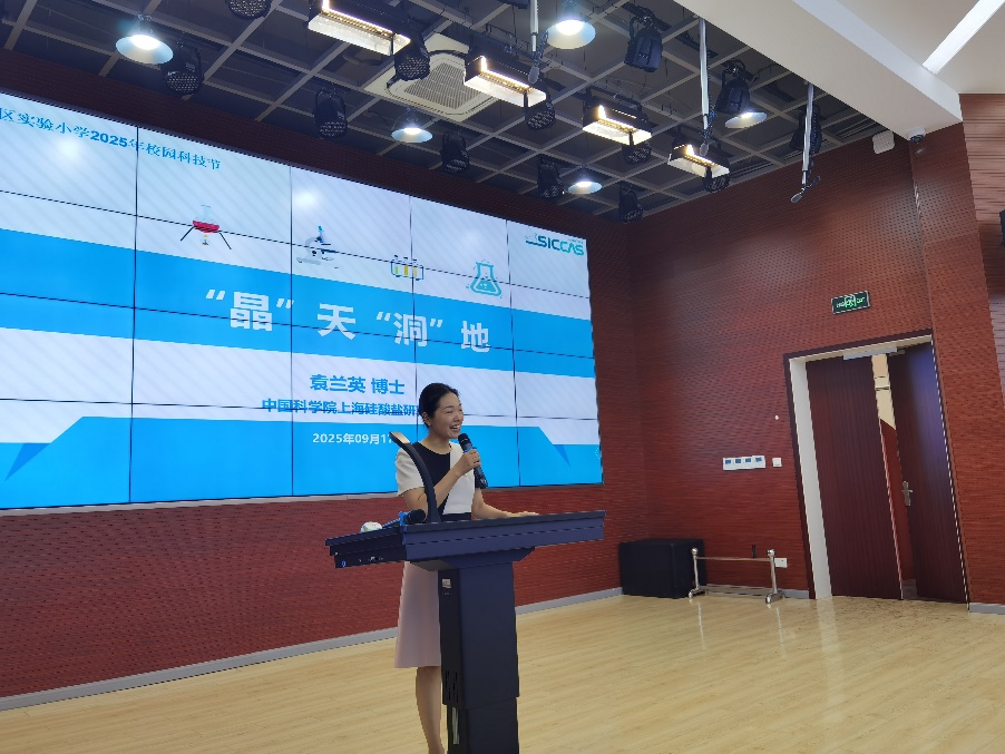 近日,由上海市嘉定区实验小学主办,中国科学院上海硅酸盐研究所等协办的“2025年嘉定区实验小学科技节”在嘉定区实验小学落下帷幕。上海硅酸盐所新材料中试研发中心党支部书记袁兰英,轻金属基电池体系和材料课题组志愿者孟园,热电转换材料与器件课题组志愿者杨馨儒,空间材料与应用技术课题组志愿者蒋圣楠,科普主管黄伊敏参加了活动。活动设置了前沿科普报告、“科学盒子”科研微课题体验、科普临展等板块。