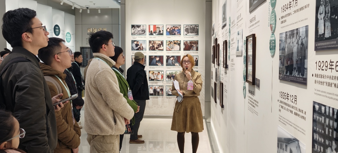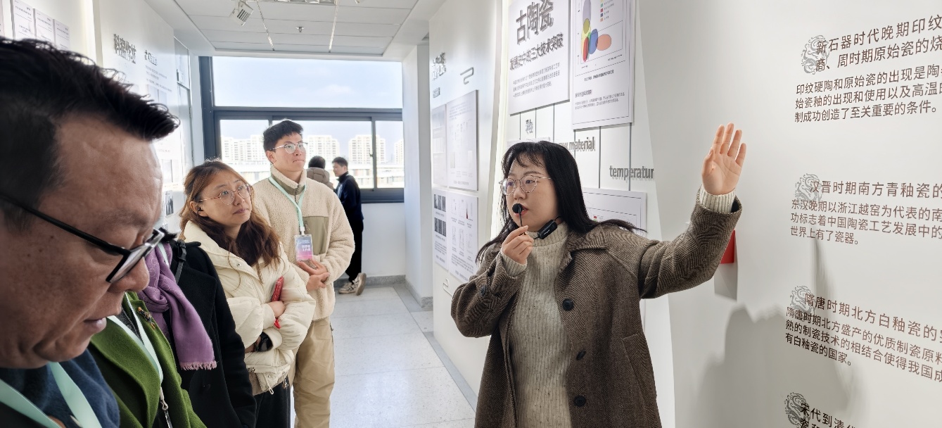 在上海硅酸盐所成果展厅,所办公室张力文、黄伊敏介绍了上海硅酸盐所历史沿革、学科方向、人才队伍、科研平台建设以及围绕国家重大需求、服务国家科技水平跨越式发展等方面的情况;古陶瓷课题组丁娆博士为参观人员介绍古陶瓷展厅,以展厅展示的历代典型古陶瓷标本为主线,介绍展品背后的科学技术研究成果,阐释中国古代陶瓷发明创造的科学内涵。