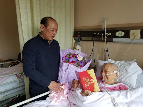 2016年12月13日硅所所长宋力昕与人事处同志看望李家治先生,并为李家治先生庆祝97岁生日