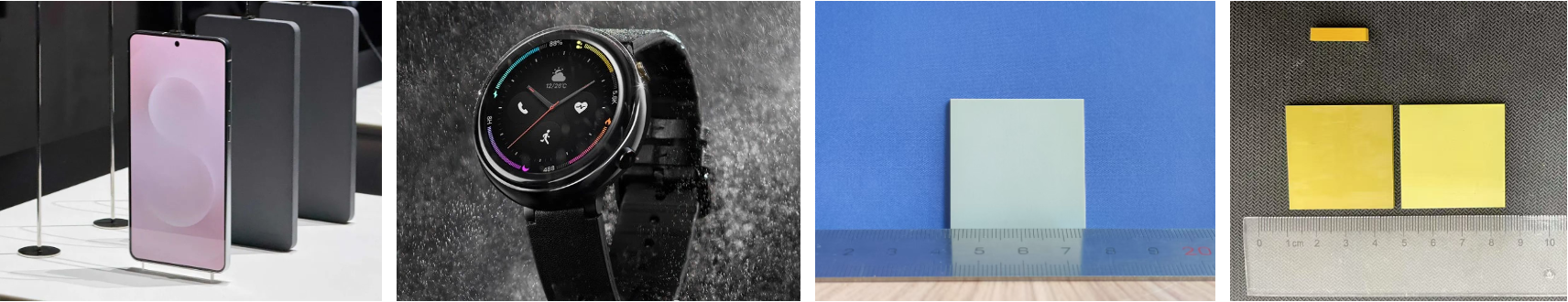 面向通信、物联网及智能穿戴设备对高可靠性与高频信号传输能力的材料需求,团队通过优化氮化硅陶瓷的组分与织构化微观结构设计,成功实现了其力学性能与热导率的协同优化。同时,团队采用稀土离子掺杂技术实现了氮化硅陶瓷的精确色调控制,包括黑色、黄色、粉色、绿色等多种颜色,既满足了智能终端在美学设计上的个性化需求,又在保持高强度和耐用性的基础上提供了优异的抗刮擦和抗老化性能,在智能终端设备外壳领域具有广阔的应用潜力。