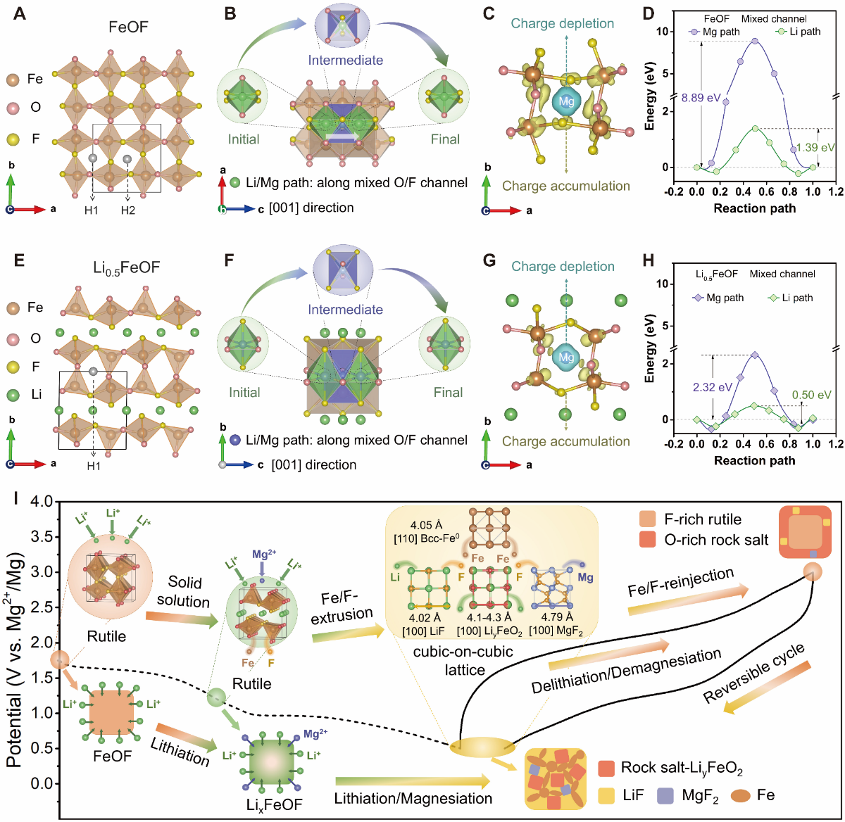 Li+/Mg2+混合体系中金红石型FeOF结构的固态扩散行为和反应机理