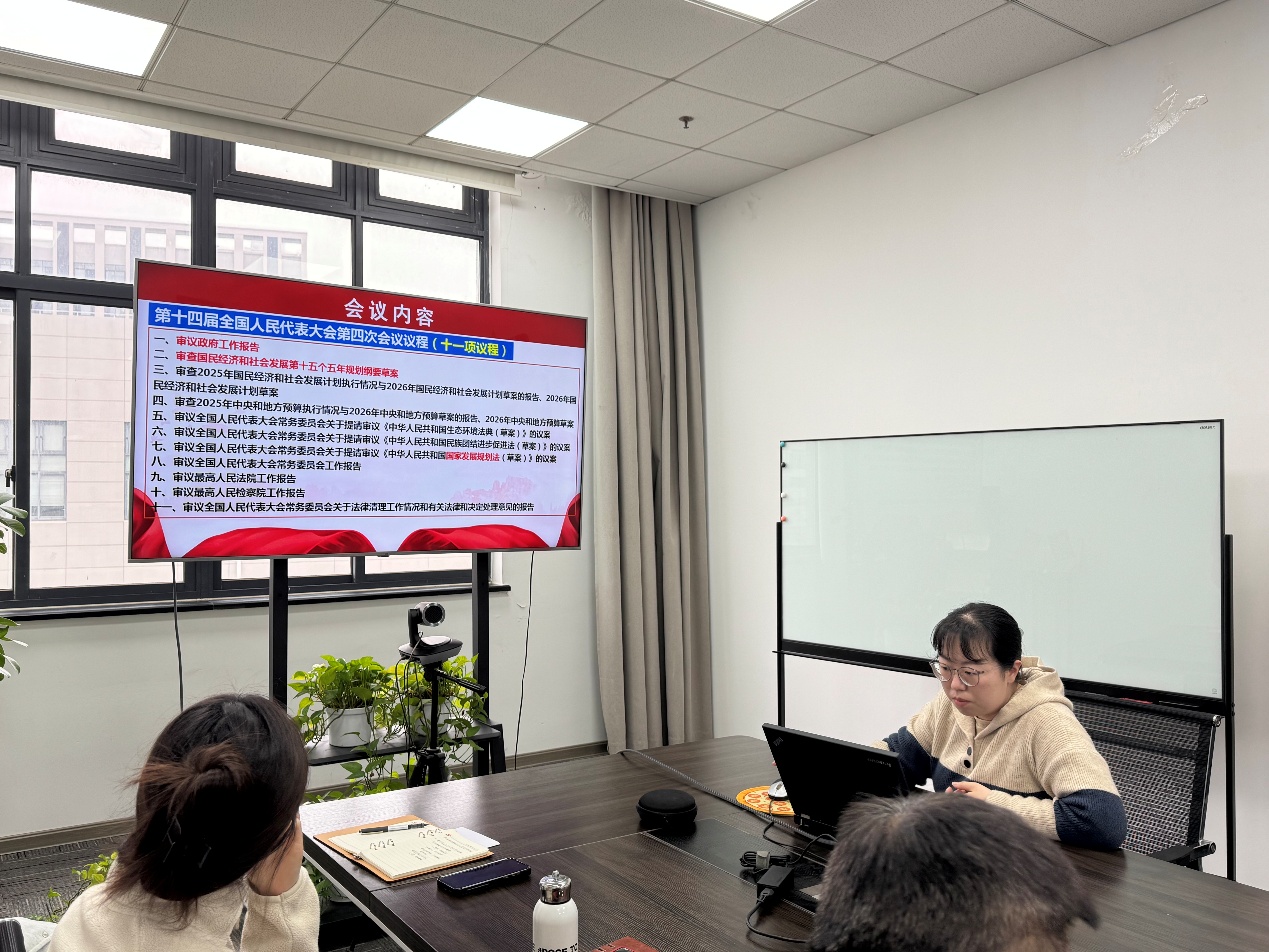 丁娆领学了2026年全国两会精神,2026年全国两会是在“十四五”收官、“十五五”蓄势的关键之年召开的重要会议,应着重把握“十五五”期间科技创新工作的新部署新要求,为实现高水平科技自立自强、建设科技强国凝聚更多智慧和力量。