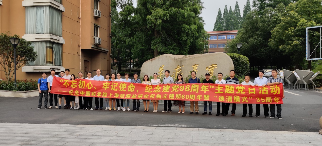 时值建党98周年、中国科学院上海硅酸盐研究所独立建所60周年暨德清模式35周年,为推动上海硅酸盐所服务地方发展的“德清模式”再出发,6月29日,机关一二支部组织党员、入党积极分子等赴德清开展“不忘初心、牢记使命”暨纪念建党98周年主题党日活动。
