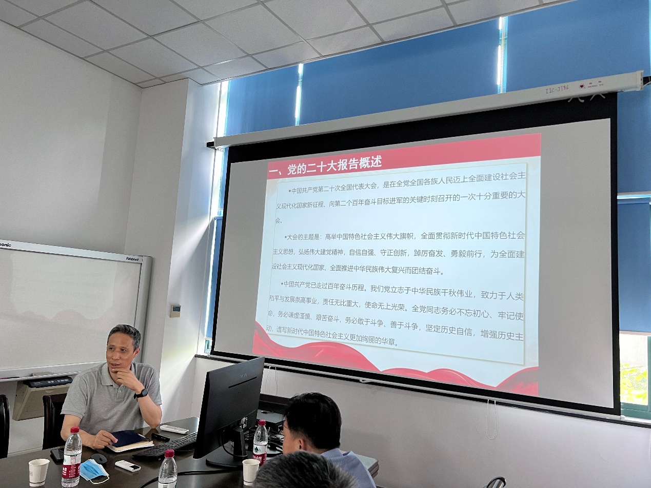 沈兆雷作题为“学习二十大报告,统筹安全与发展”专题党课,他深度解读了党的二十大报告中有关国家安全等重要内容,强调了国家安全在党和国家工作大局中的重要地位;领学了习近平总书记关于安全工作的重要论述和候建国院长关于安全工作的重要要求,强调把安全稳定工作作为一项重要的政治任务来抓。他结合多年安全管理的工作经验和体会,要求广大党员进一步提高政治站位,增强安全意识、强化安全责任,组织、推动、检查、发现、落实安全工作,统筹落实好研究所的安全和发展。