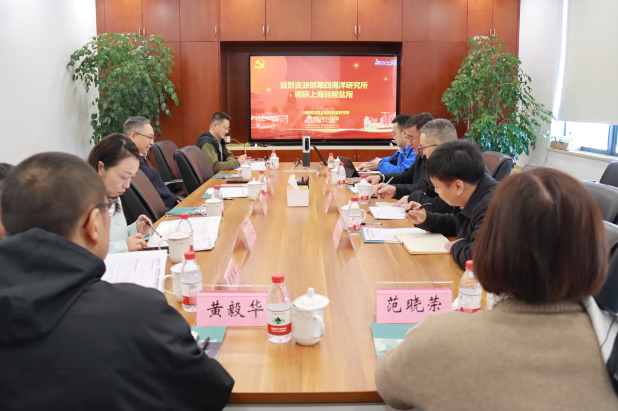12月4日上午,自然资源部第四海洋研究所党委书记、副所长欧波,海洋四所副所长雷吉江,海洋四所办公室负责人、第一党支部书记何精,海洋四所科技处副处长(主持工作)关瑶到中国科学院上海硅酸盐研究所开展调研,并举行座谈交流会。上海硅酸盐所所长苏良碧,党委委员、所务委员、党委办公室主任、所办公室主任毛朝梁,基础科研处副处长沈沪江,人力资源处副处长张灿周,透明陶瓷研究中心副主任、光学陶瓷与复合材料课题组长研究员周国红,先进碳化物陶瓷材料课题组研究员黄毅华,压电陶瓷材料与器件课题组正高级工程师范晓荣参加座谈。座谈会由苏良碧主持。