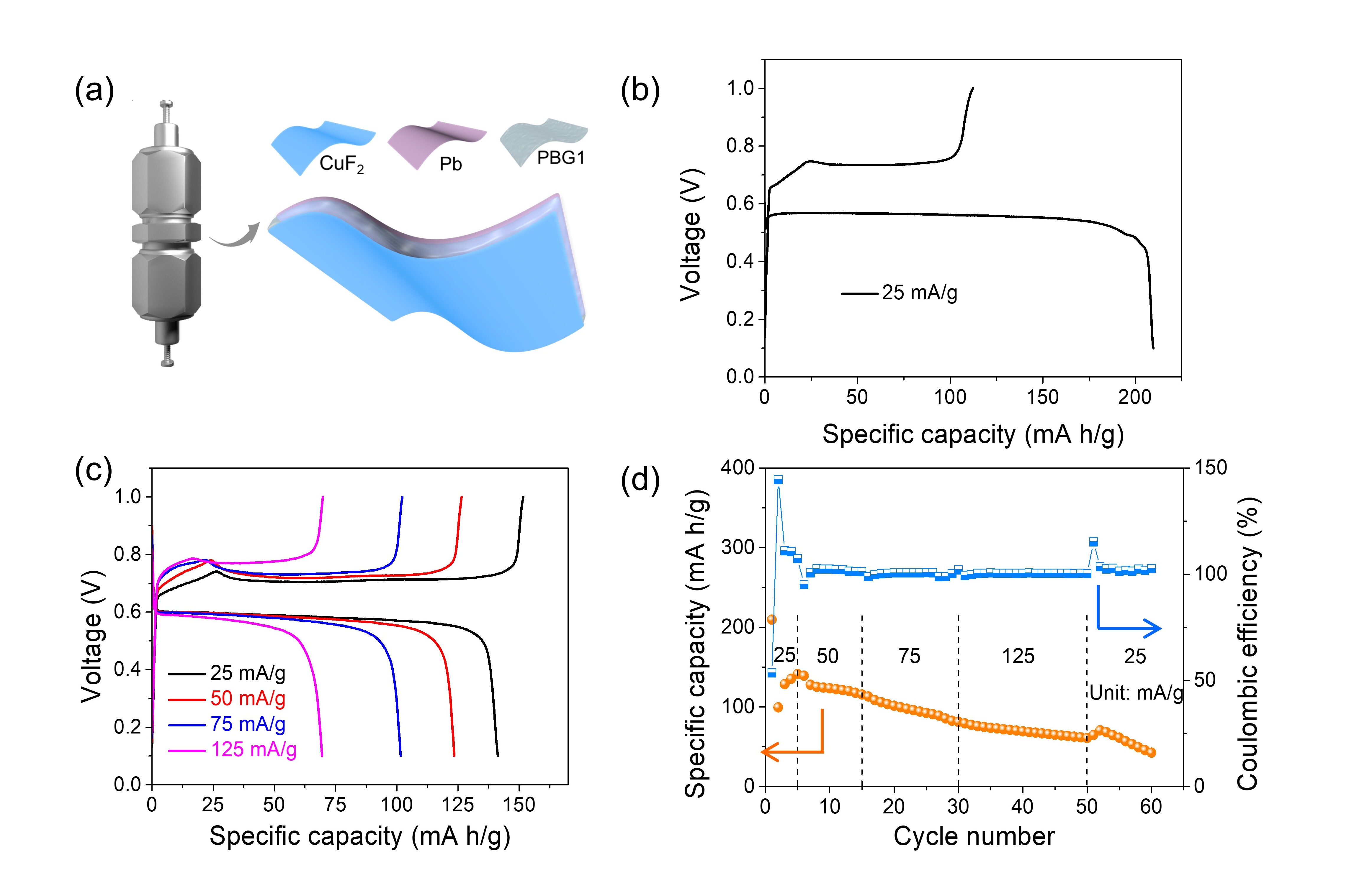 图4 CuF2|PBG1|Pb全固态电池在60℃下的电化学性能