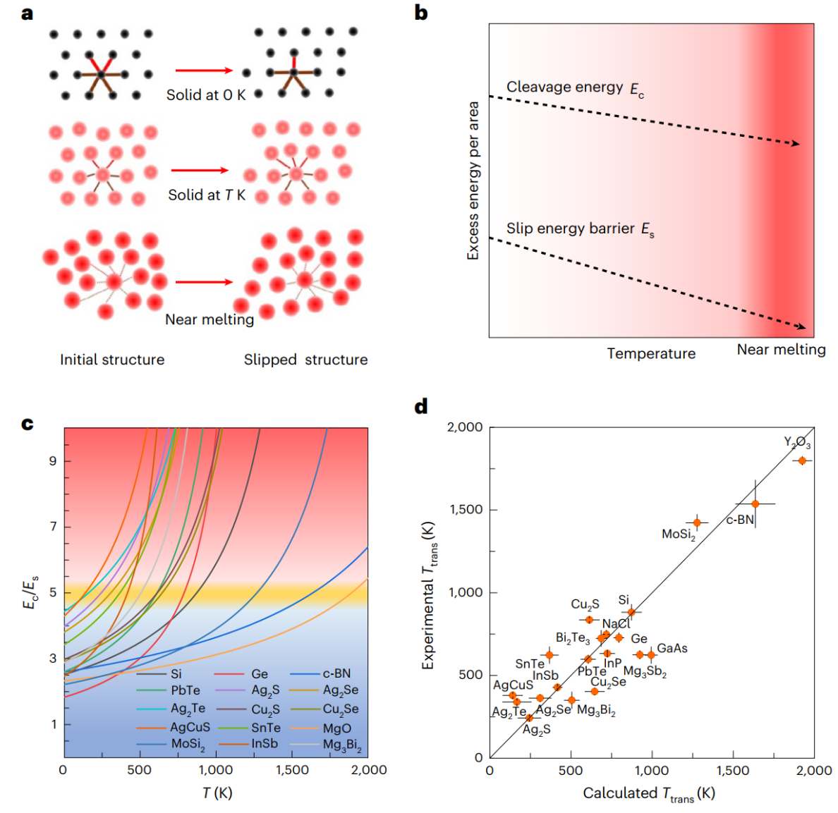 图3. 无机半导体的变温塑性物理模型及韧脆转变温度的理论预测。