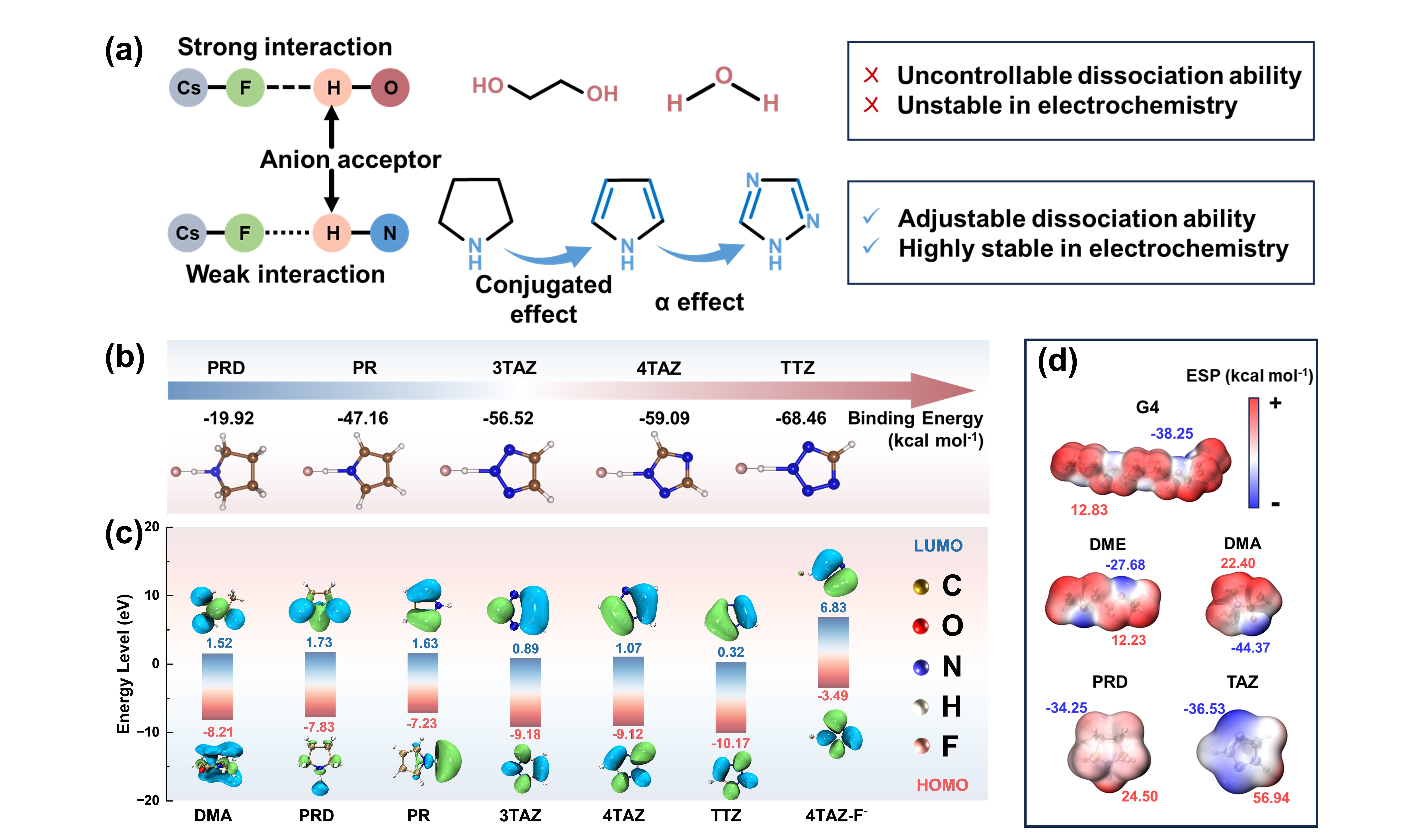 理论计算指导构建基于高供体溶剂与醇阴离子受体的电解液