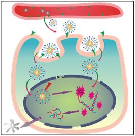 面对全球严峻的抗癌形势,如何在提高癌症治疗效果的同时,降低药物的毒副作用以减轻病人痛苦并延长生存期已成为重大的社会问题。临床研究表明,药物的治疗效果很大程度上取决于药物与亚细胞结构及生物大分子等(如线粒体、DNA、RNA等)的有效相互作用。大部分抗癌药物通过损伤细胞核内DNA杀死癌细胞,因此,其作用靶点位于癌细胞的细胞核中。然而已有研究指出,由于细胞核膜强烈的屏蔽作用,细胞质中的药物分子只有不到1%能进入细胞核,并与DNA发生作用。因此,开发新型的直接细胞核靶向药物输运体系有望在亚细胞水平提高有效药物浓度,降低细胞微环境对药物活性的影响,为肿瘤的高效治疗提供更精确的靶向给药模式,展示出广阔的临床应用前景。