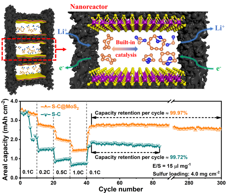 具有内建催化特性的限域纳米反应器用于高载量锂硫电池